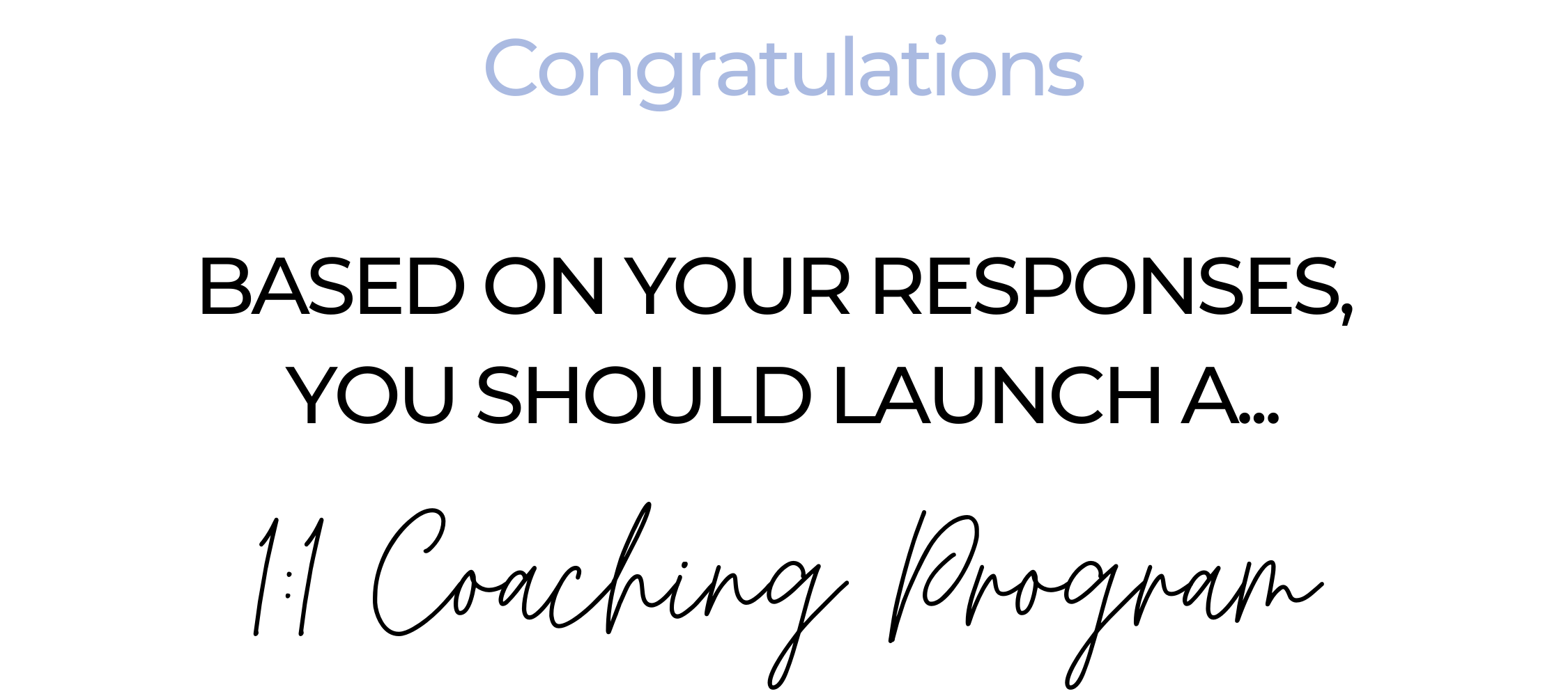 Based on your quiz results, your best bet is to launch a 1:1 private coaching program!